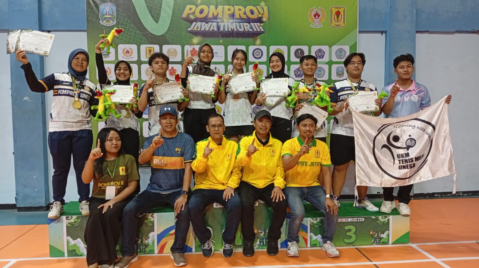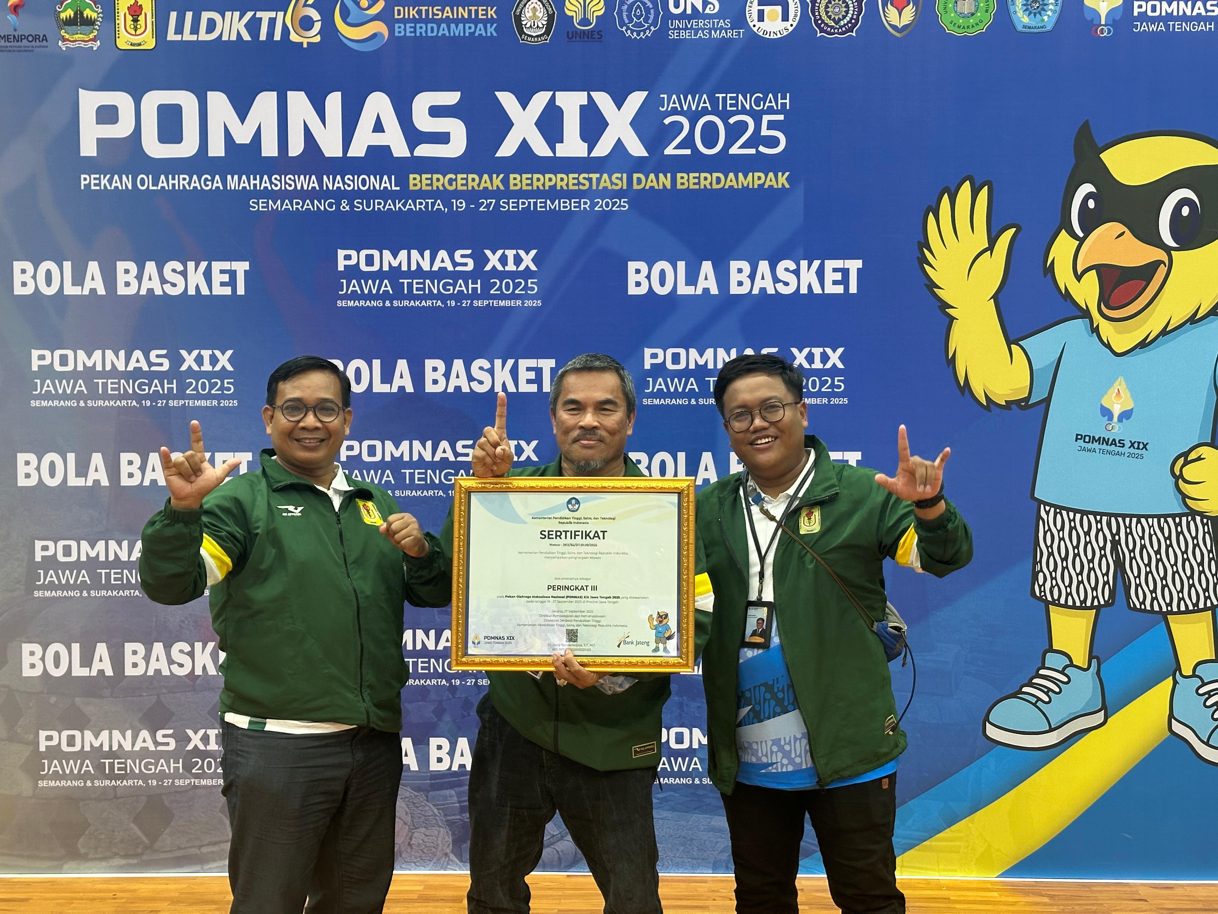 SEMARANG—Kontingen Jawa Timur kembali menduduki peringkat ke-3 Pekan Olahraga Mahasiswa Nasional (Pomnas) XIX Jawa Tengah 2025 setelah mengoleksi 39 emas, 50 perak, dan 44 perunggu. Total medali yang dikumpulkan sebanyak 133 keping.Juara umum P