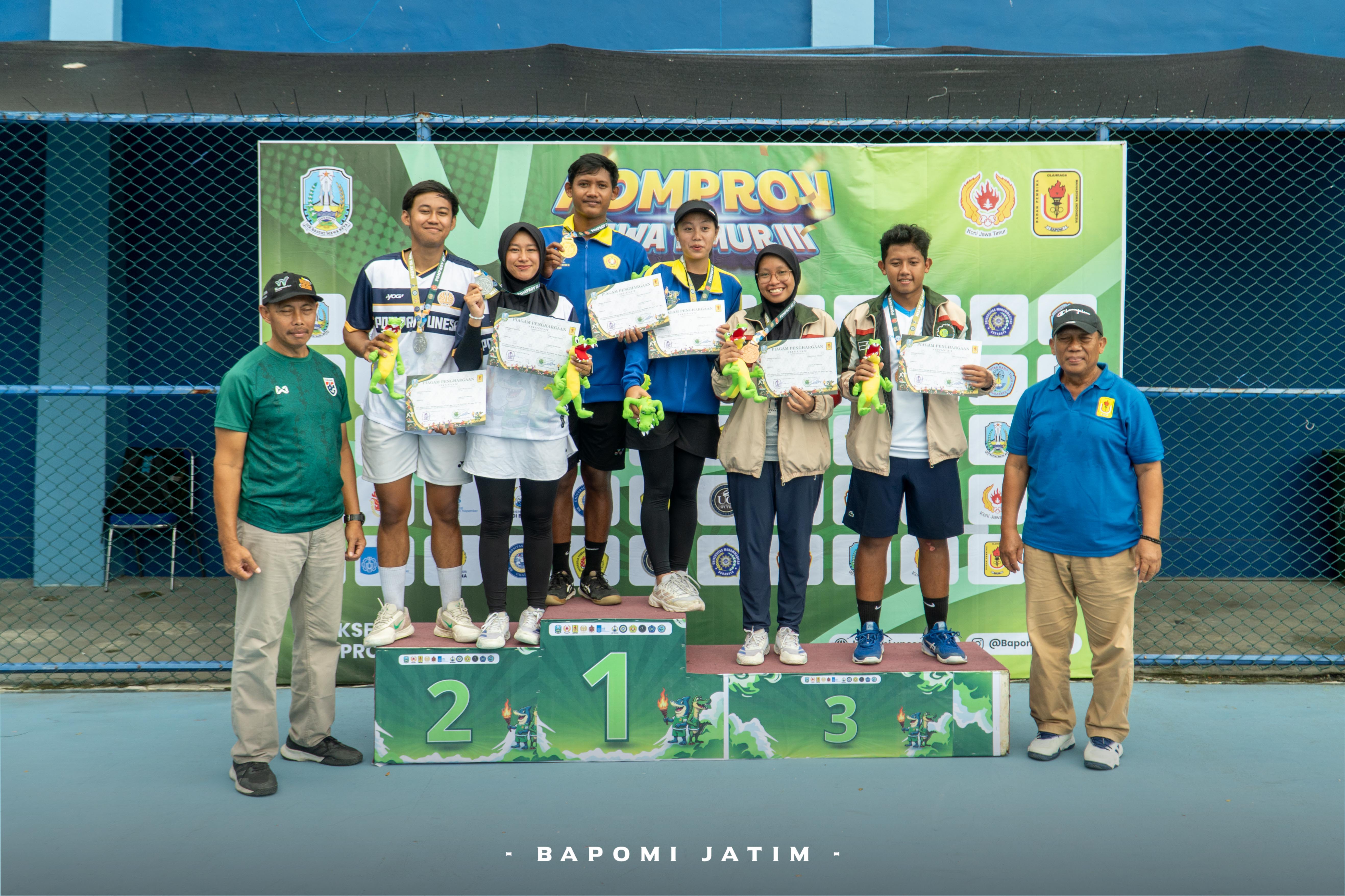 Bapomi.unesa.ac.id, SURABAYA—Gelora persaingan ketat Cabor tenis lapangan Pomprov Jatim III 2025 ditutup setelah Tim Ganda Campuran UPN Veteran Jawa Timur mengungguli Tim Ganda Campuran UNESA. Babak penutup tersebut berlangsung di Lapangan Ten